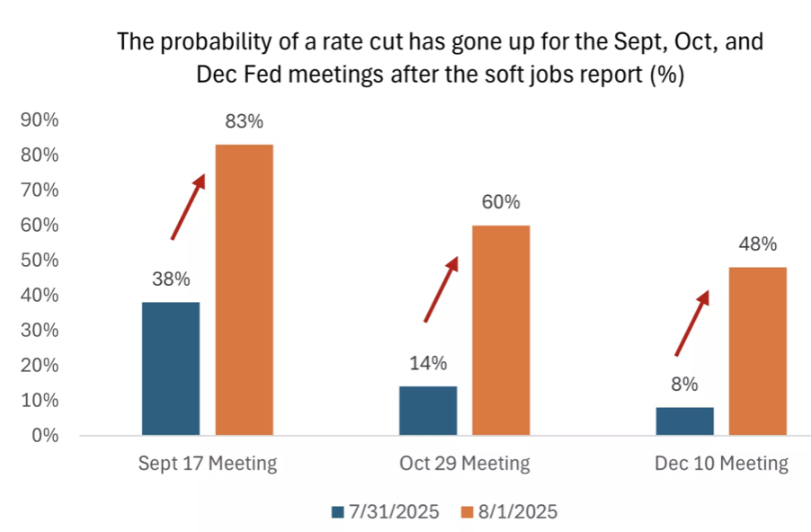 a softer labor market. However, the likelihood of Fed rate cuts has also increased, combined with some fiscal