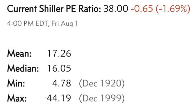 Currrent Shiller PE (see below) is showing overbought conditions as index is far above mean/media