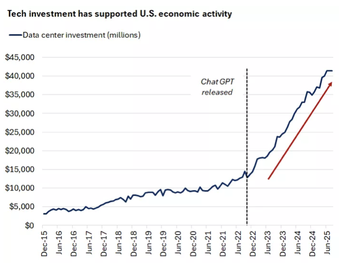 Technology investment also supported economic growth in 2025, with data-center investment roughly tripling