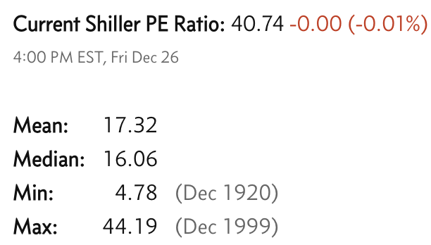 Currrent Shiller PE (see below) is showing overbought conditions as index is far above mean/media