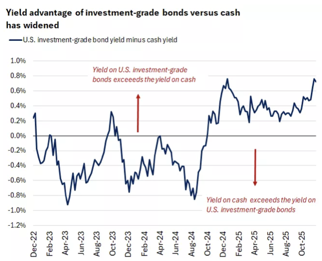 could lead to a further widening of the yield advantage between U.S. investment-grade bonds and cash,