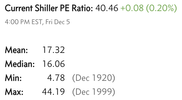 Currrent Shiller PE (see below) is showing overbought conditions as index is far above mean/media
