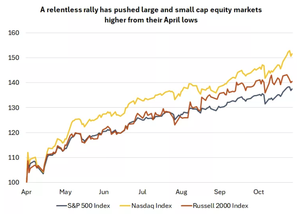 Markets rallied strongly in October, shaking off typical Halloween uncertainties to approach record highs.