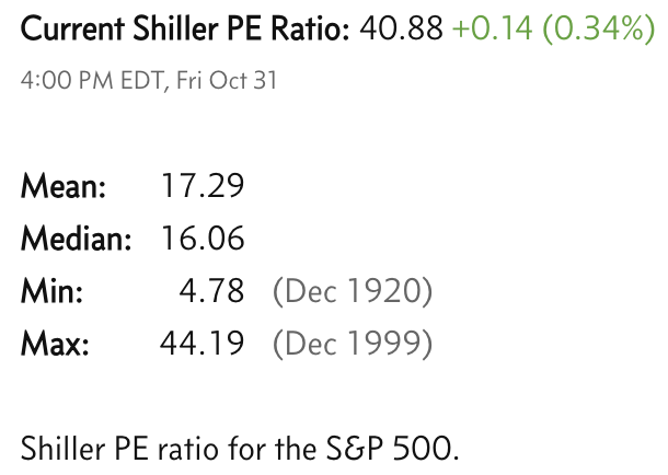 Currrent Shiller PE (see below) is showing overbought conditions as index is far above mean/media