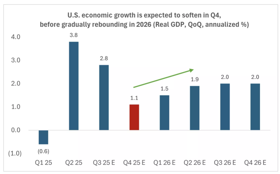 The shutdown is estimated to reduce fourth-quarter 2025 economic growth by 1.5 percentage points, lowering