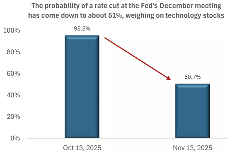 The technology and AI sectors are underperforming in November after a strong rally since April. Mega-cap tech