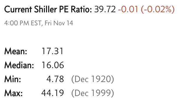 Currrent Shiller PE (see below) is showing overbought conditions as index is far above mean/media