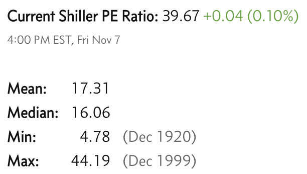 Currrent Shiller PE (see below) is showing overbought conditions as index is far above mean/media