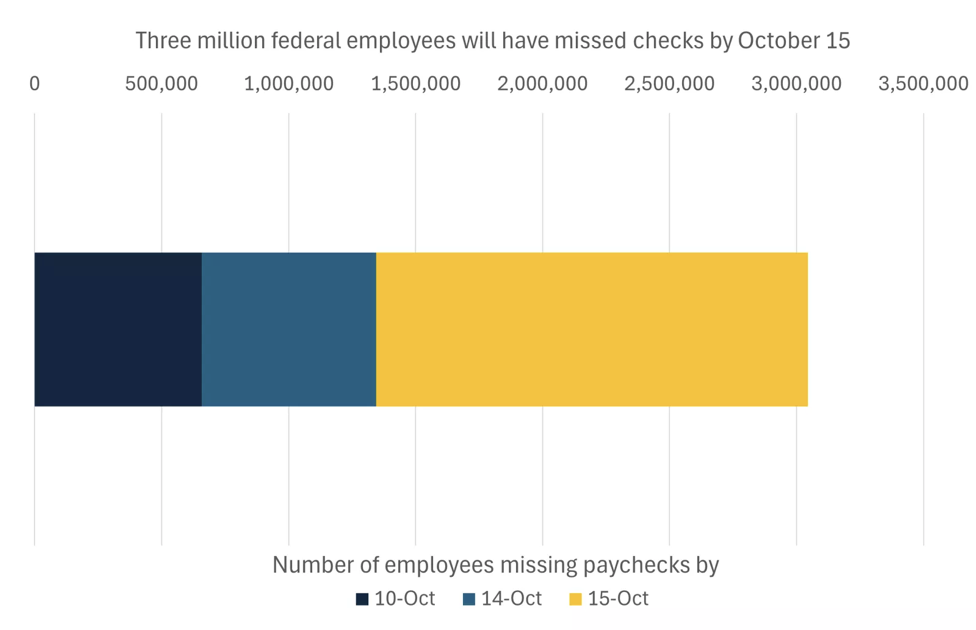 Over 650,000 federal employees have missed paychecks, a number that could exceed three million by the third week,