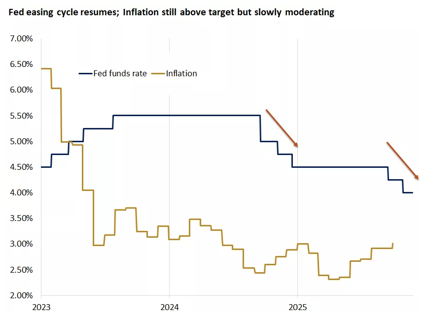 path of rates, we expect the Fed to ease cautiously, with the overall trend pointing lower through 2026,