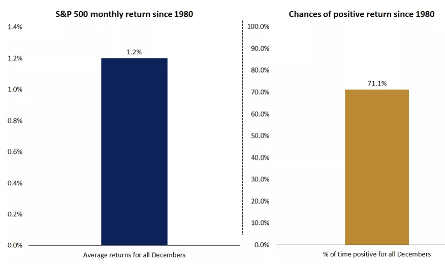 has delivered solid returns. Over the past 30 years, December has averaged a gain of about 1%, with markets rising