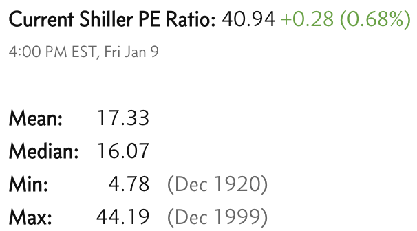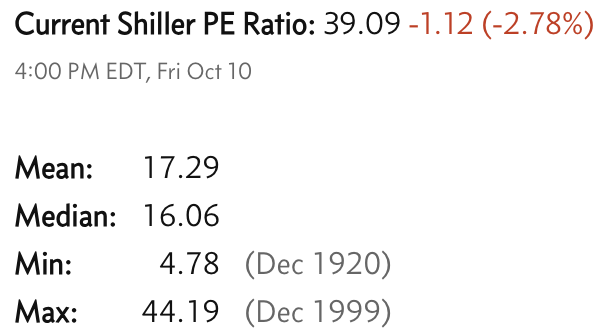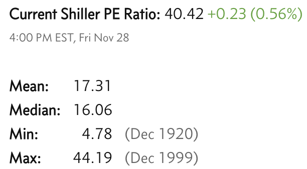 Currrent Shiller PE (see below) is showing overbought conditions as index is far above mean/media