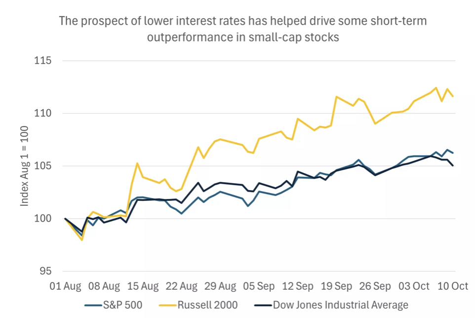 probability. This has driven outperformance in interest-rate-sensitive small-cap benchmarks, with the Russell